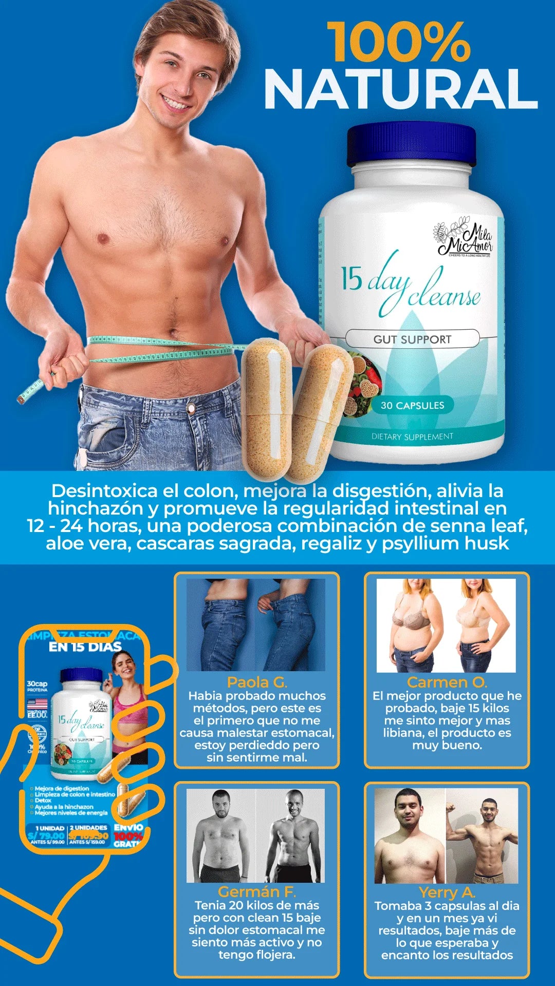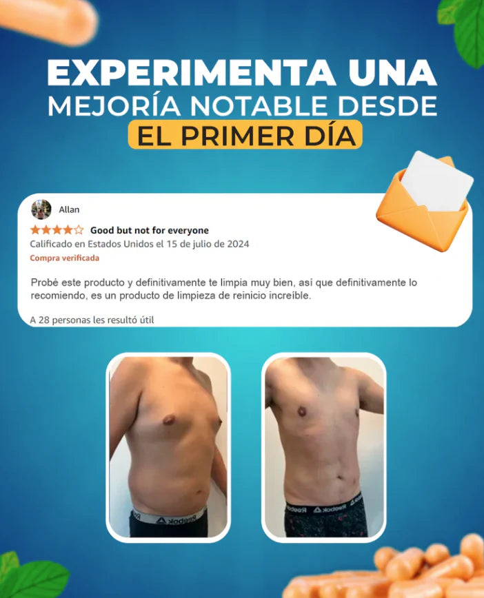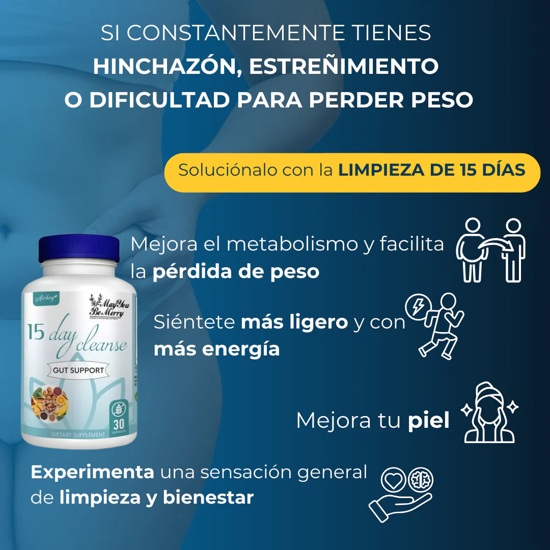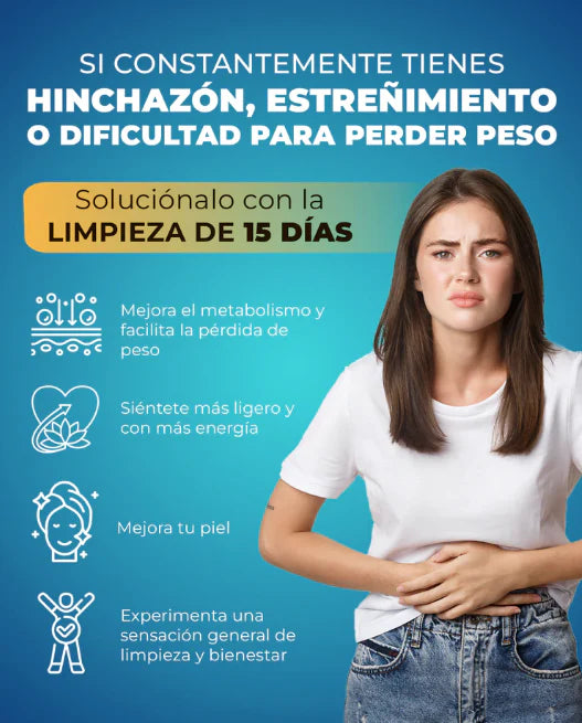 En 15 días limpias tu colon, eliminas toxinas y reduces la inflamación. Recuperas energía, mejoras tu digestión y bajas medidas sin dietas extremas.